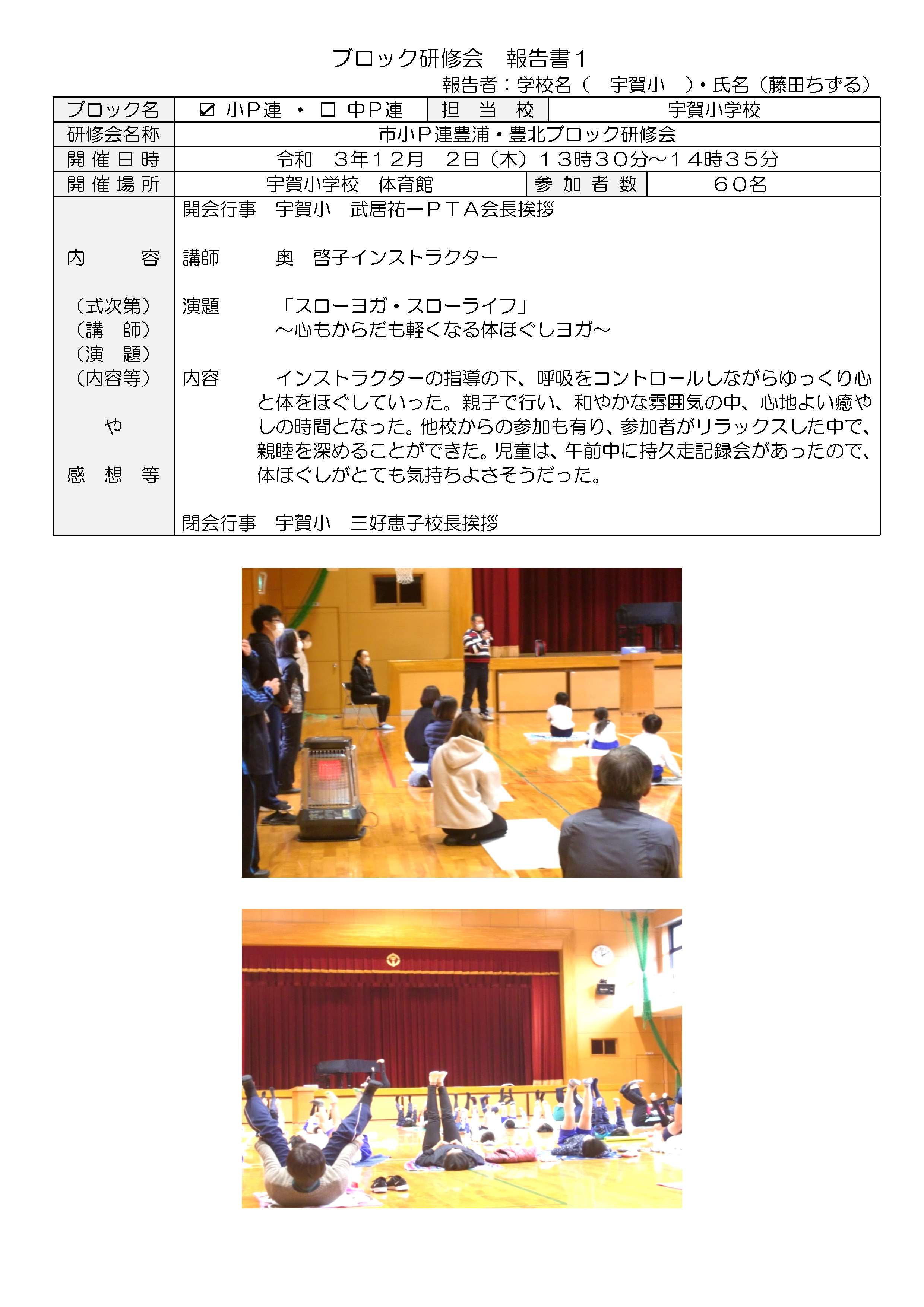 小P連 豊浦・豊北ブロック研修会が開催されました。(令和3年12月2日[木]13時30分〜14時35分 宇賀小学校体育館)